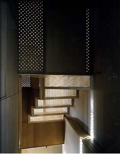子供達が独立し、夫婦二人になった建築主が、老後を快適に過ごせるように、ゆったりとしたのびやかな空間作りを心掛けた。内装材には健康を考慮した材料として、吸湿、脱臭性能のある珪藻土の左官と、ノンホルム合板及び天然素材使用の和紙、織物壁紙等を使用した。家の中全体を穏やかに風が流れ、空気のよどみをつくらないように2、3階を結ぶ階段の蹴込みや壁に、パンチングや穴あきの合板を使い、また、各所に熱交換型の換気扇を設けた。